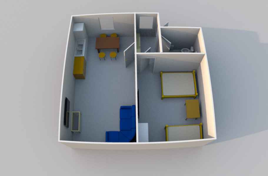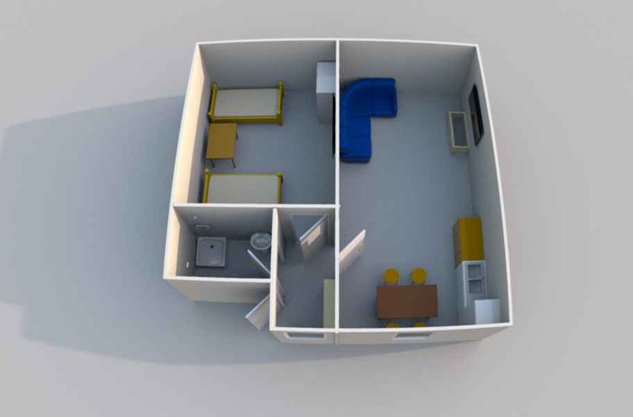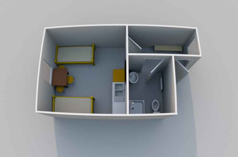 Для комфортного размещения двух человек. Общая площадь 27 м2.